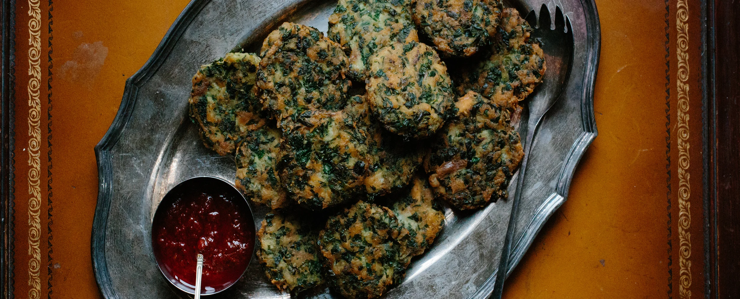 “Levivot” means “latke” in Hebrew. When Ron was growing up, his mother created these fritters as a way to use leftover chicken. It’s become a staple at the Arazis’ Hanukkah table. The pungent harissa sauce that accompanies the patties makes the dish even more festive.