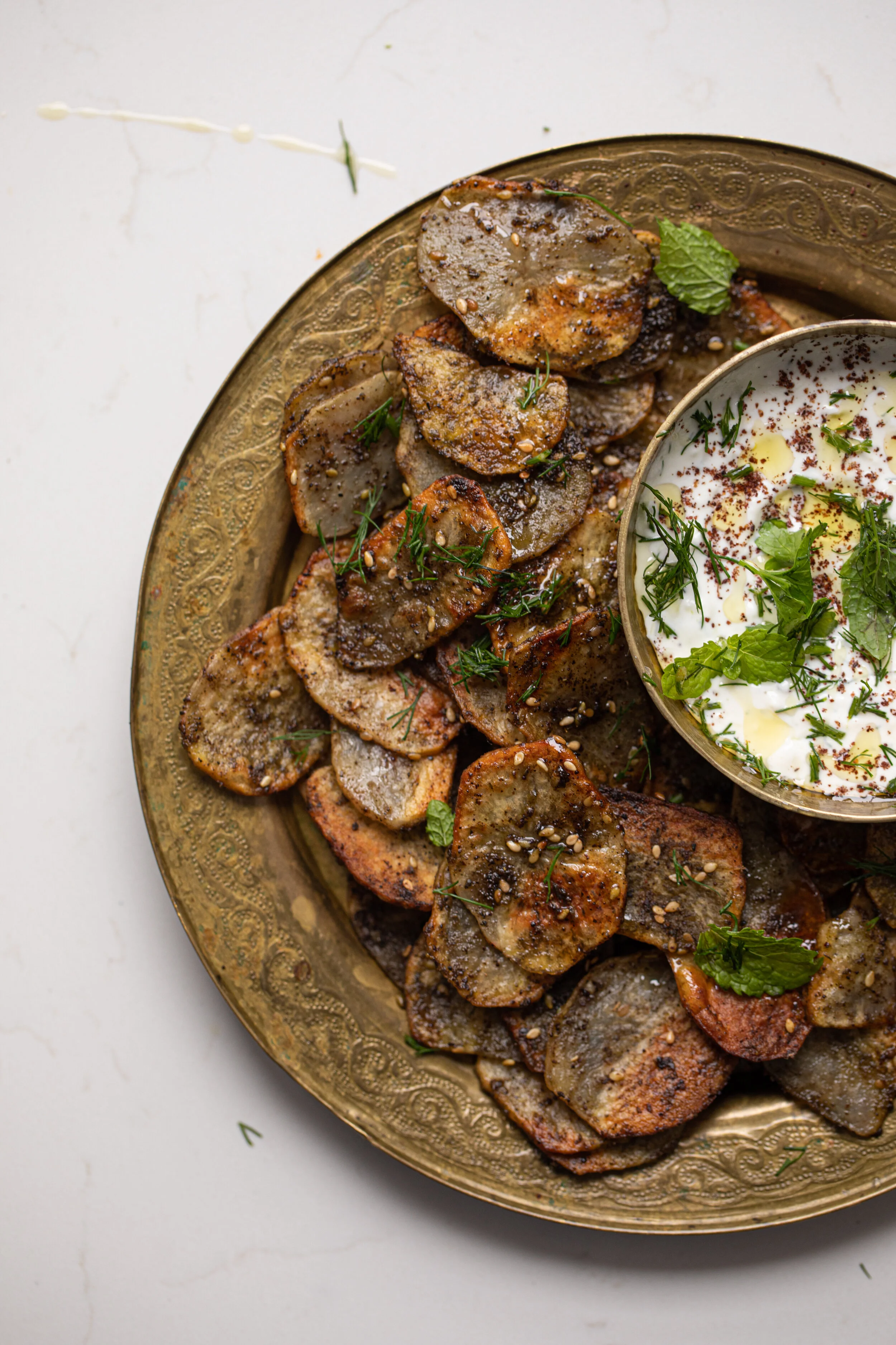 Crispy Za’atar Potatoes with a Tzatziki Dip
