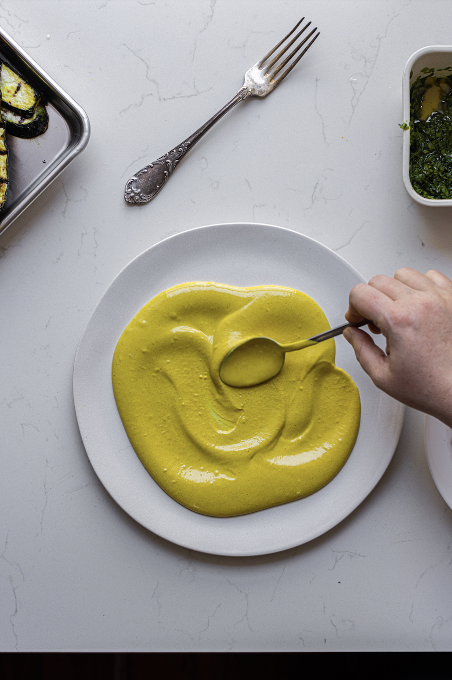 To prepare the tahini, in a medium bowl, whisk together the tahini paste, water, Preserved Lemon BBQ Sauce, turmeric (if using) and salt until fully combined. Taste and adjust the seasoning with BBQ sauce and salt.