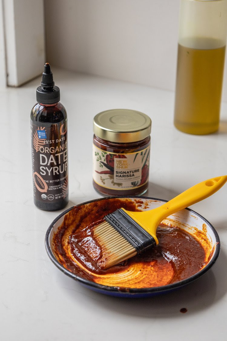 When harissa meets date syrup, magic happens—seriously. This is what happens when two pantry favorites fall in love: smoky heat, gentle sweetness, and a tahini base that ties it all together. The glaze caramelizes beautifully in the oven, giving the eggplant that deep, almost jammy richness we can’t get enough of.