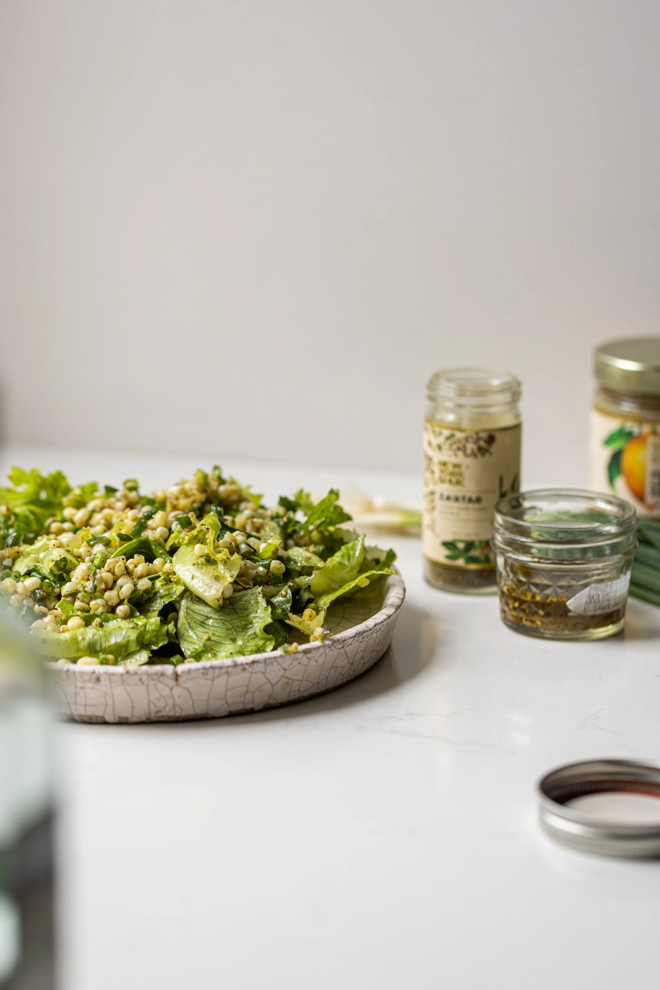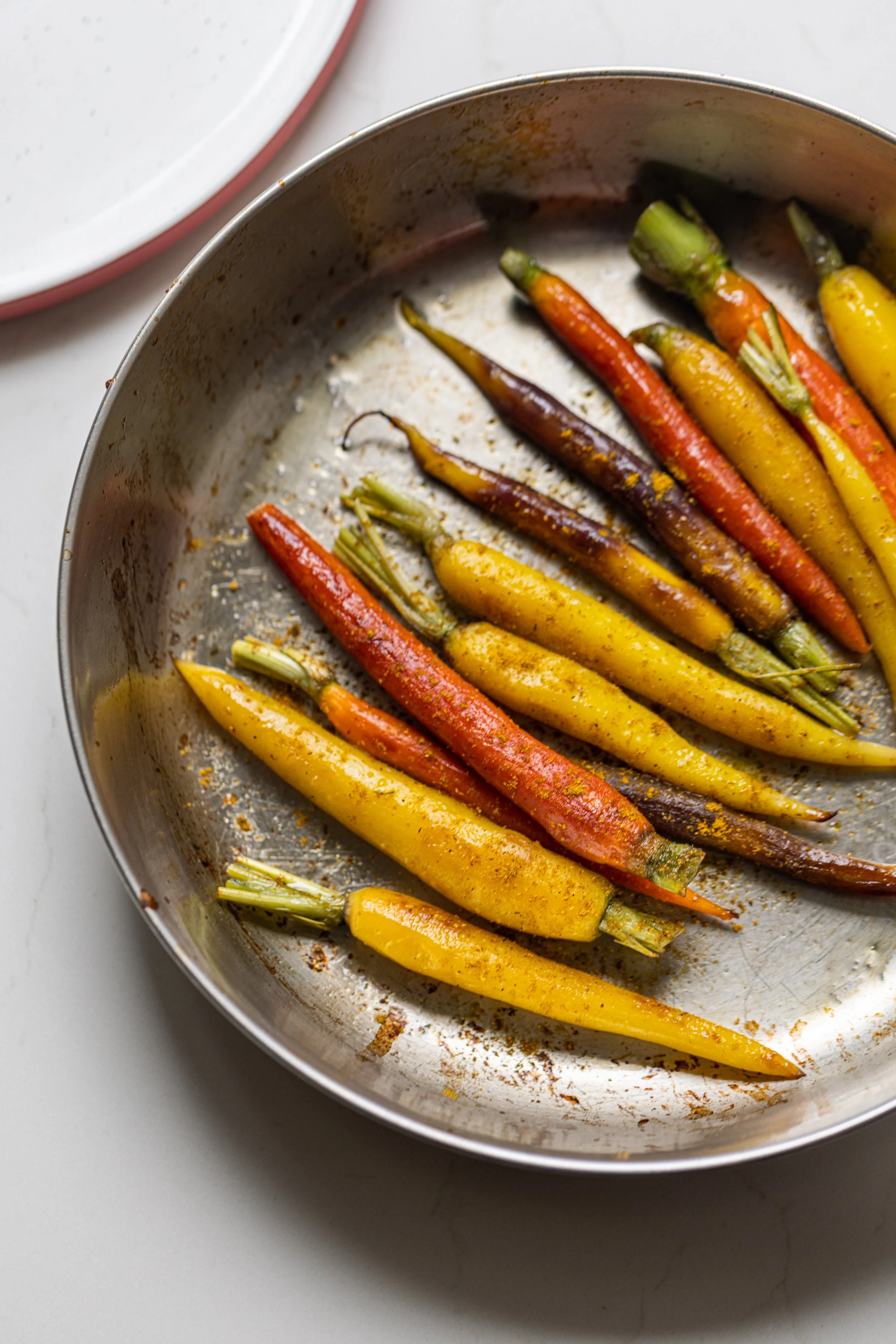 This colorful carrot salad is a beautiful addition to your Rosh Hashanah spread. The carrots are pleasantly sweet and lightly spiced with Harissa and Ras El Hanout.