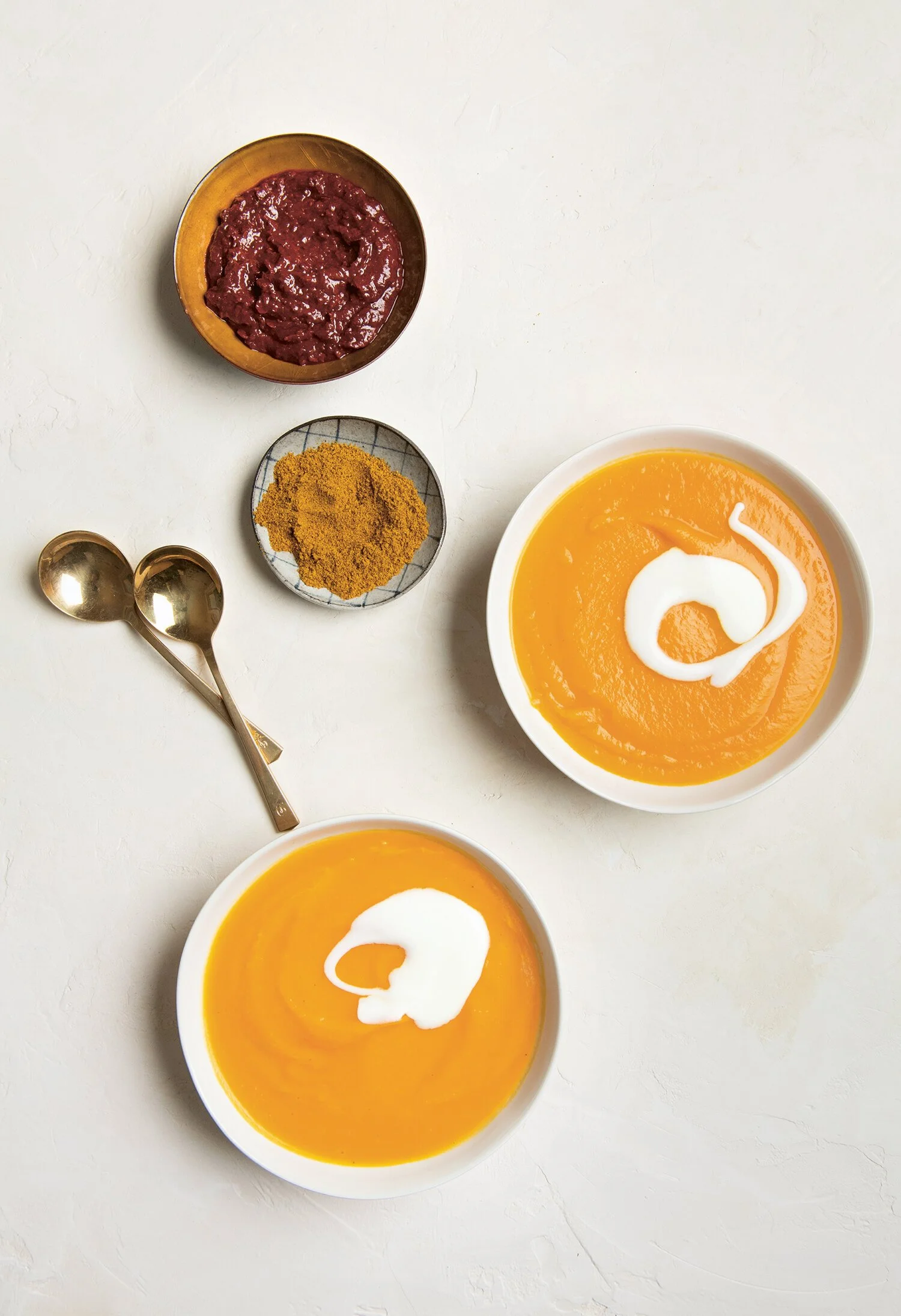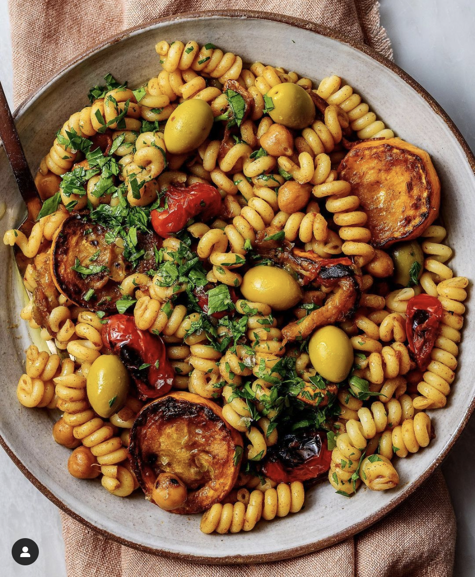 This recipe by Hetty McKinnon is layered with lots of flavor - sweetness from the squash and maple, zesty/citrusy yogurt, and a balanced touch of heat from Harissa.