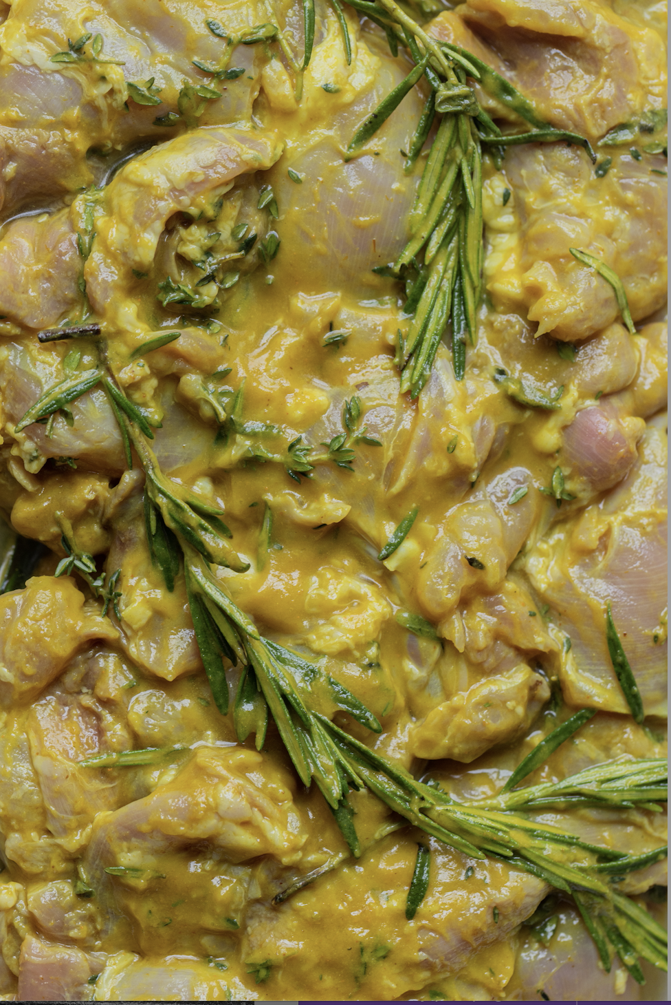 For Chicken: In a bowl, combine chicken, Preserved Lemon BBQ sauce, herbs, if using, and salt. If time allows, marinate 30 minutes or up to overnight.