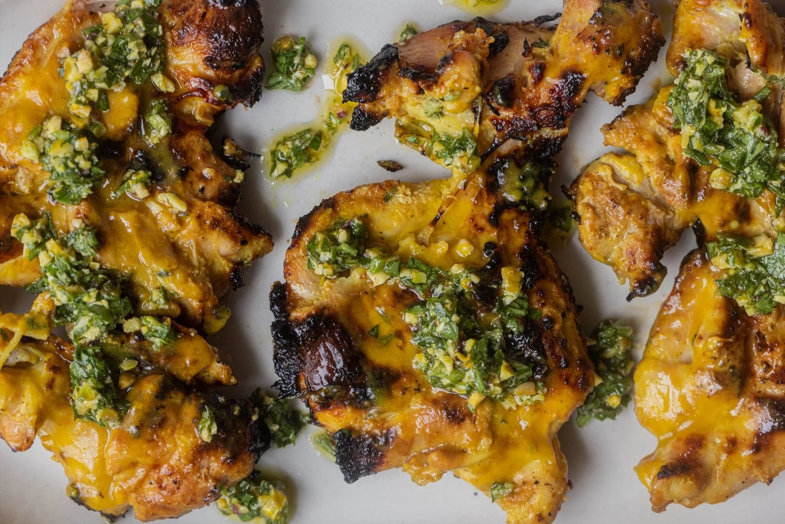 Grilled Preserved Lemon Chicken with Pistachio Chimichurri