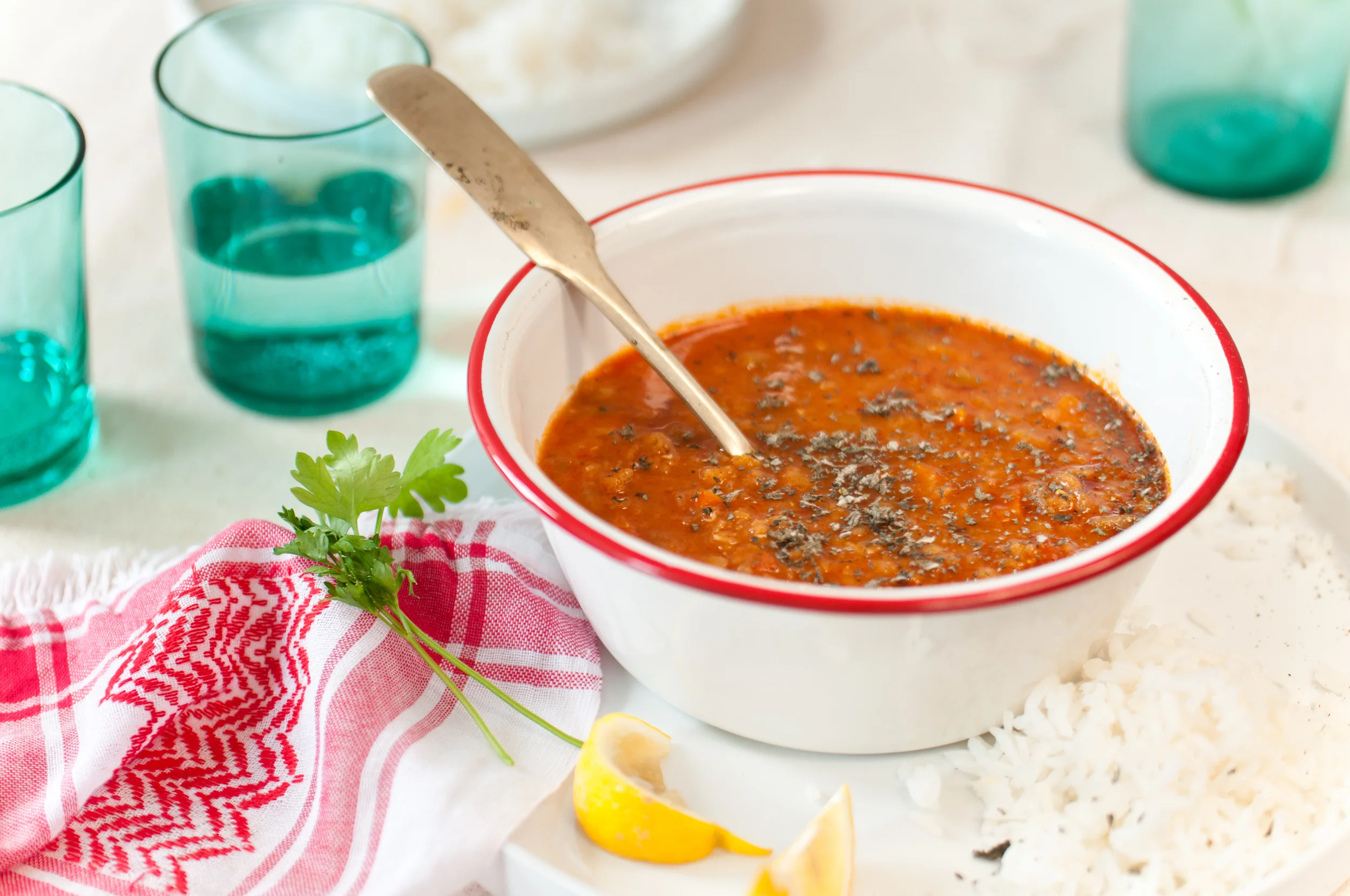 Chicken Patties & Lima Beans In Harissa Sauce.