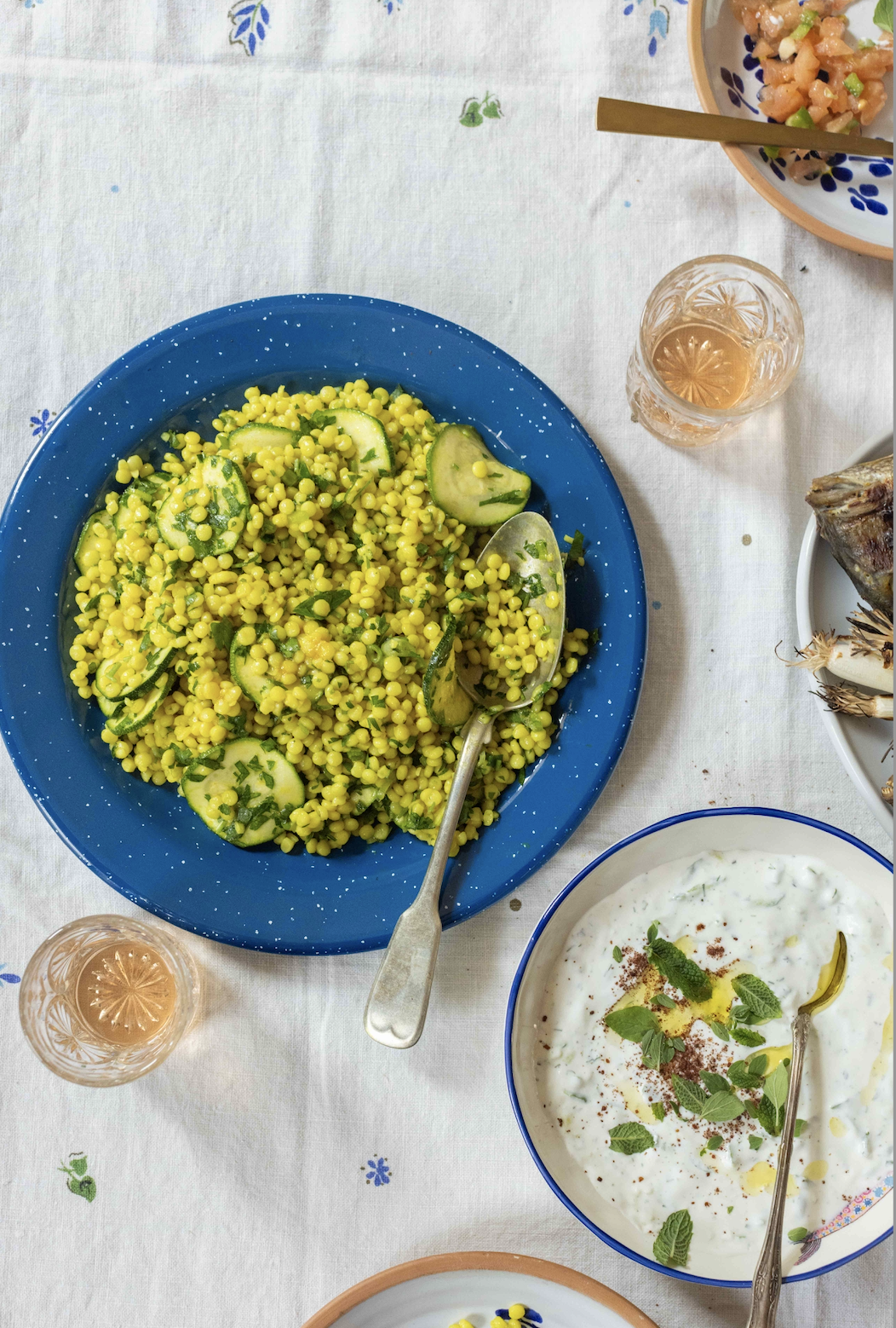 Israeli Couscous Salad with Zucchini, Herbs and Preserved Lemon