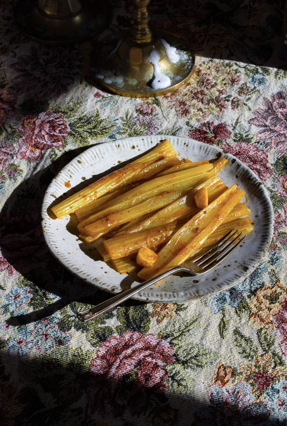 Hawaij Roasted Carrots with Mung Beans and Preserved Lemon Yoghurt