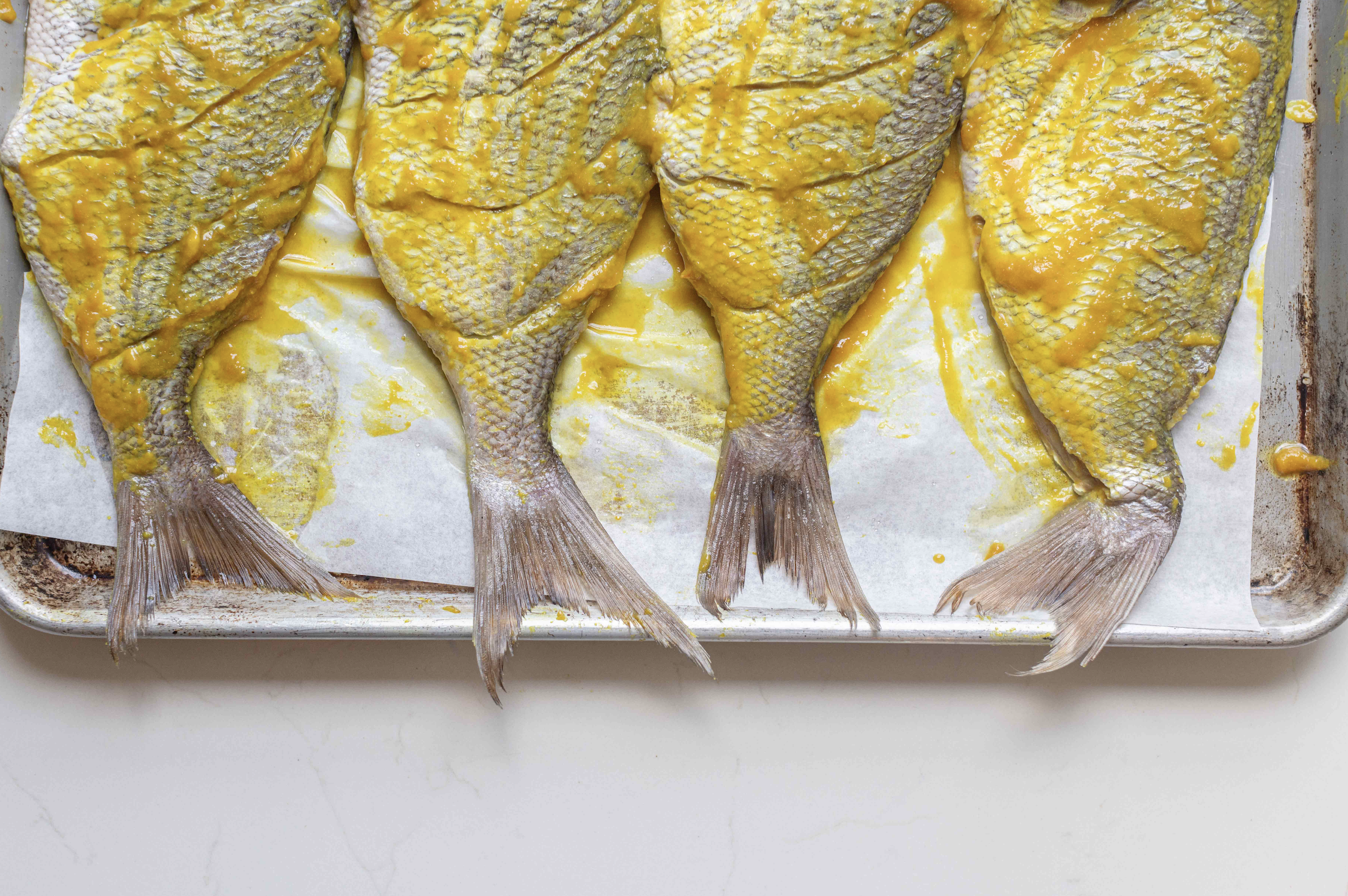 Grilled Fish with Preserved Lemon and Herby Harissa
