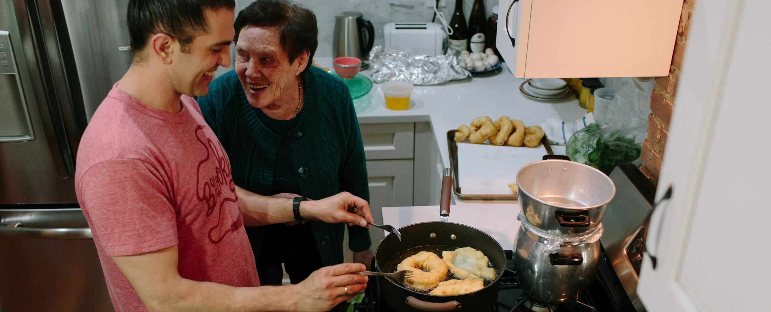 In the bowl, using your hands, fold the dough over onto itself few times. Cover and let rise for 30 minutes, or until it doubles in volume. In a deep pan, heat 3 inches high of canola oil.