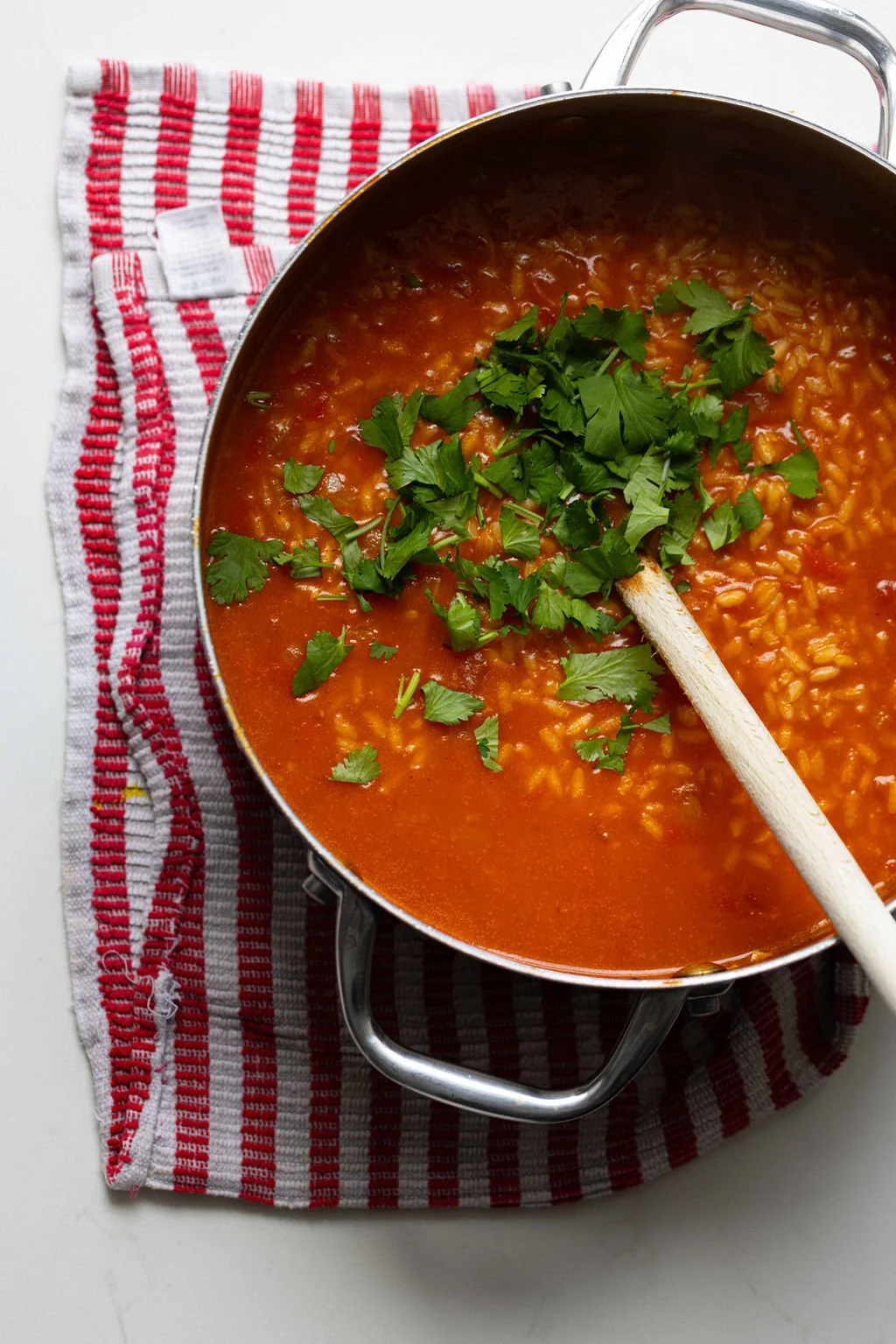 Tomato rice, or arroz de tomate, is a staple of Portuguese home cooking—simple, comforting and deeply rooted in tradition. The addition of our Signature Harissa adds a subtle heat and je ne sais quoi to this already perfect dish. Be sure to remove the rice from the heat while it still retains a bit of bite and there’s a little liquid remaining in the pot. For optimum texture and flavor, serve right away.