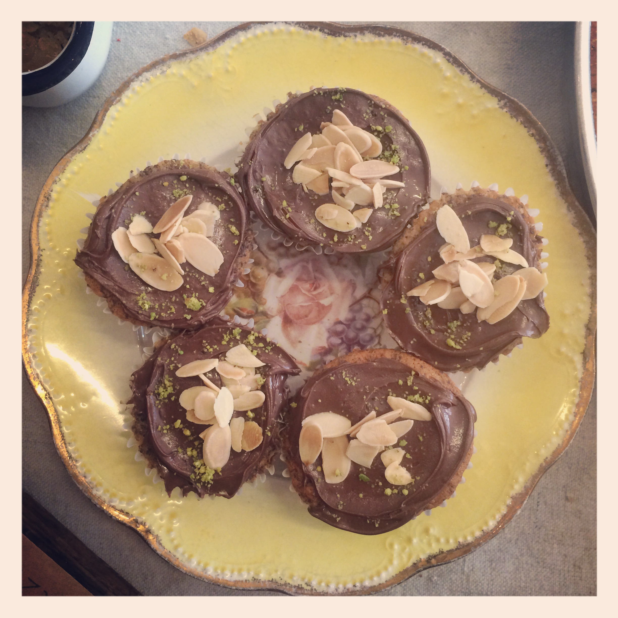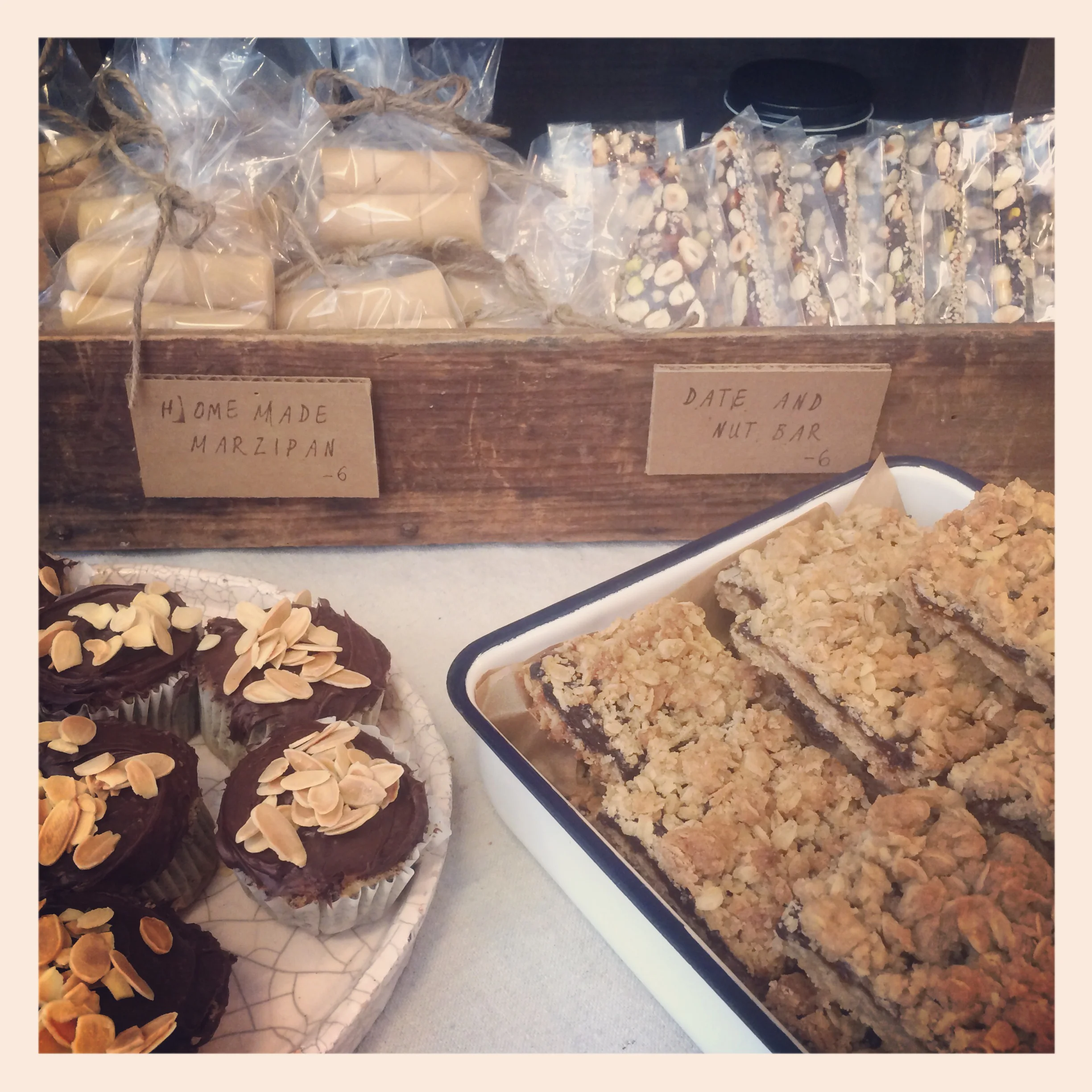 Marzipan and date&nut roll in the back with the tanzeya oat bar and cupcakes in the front