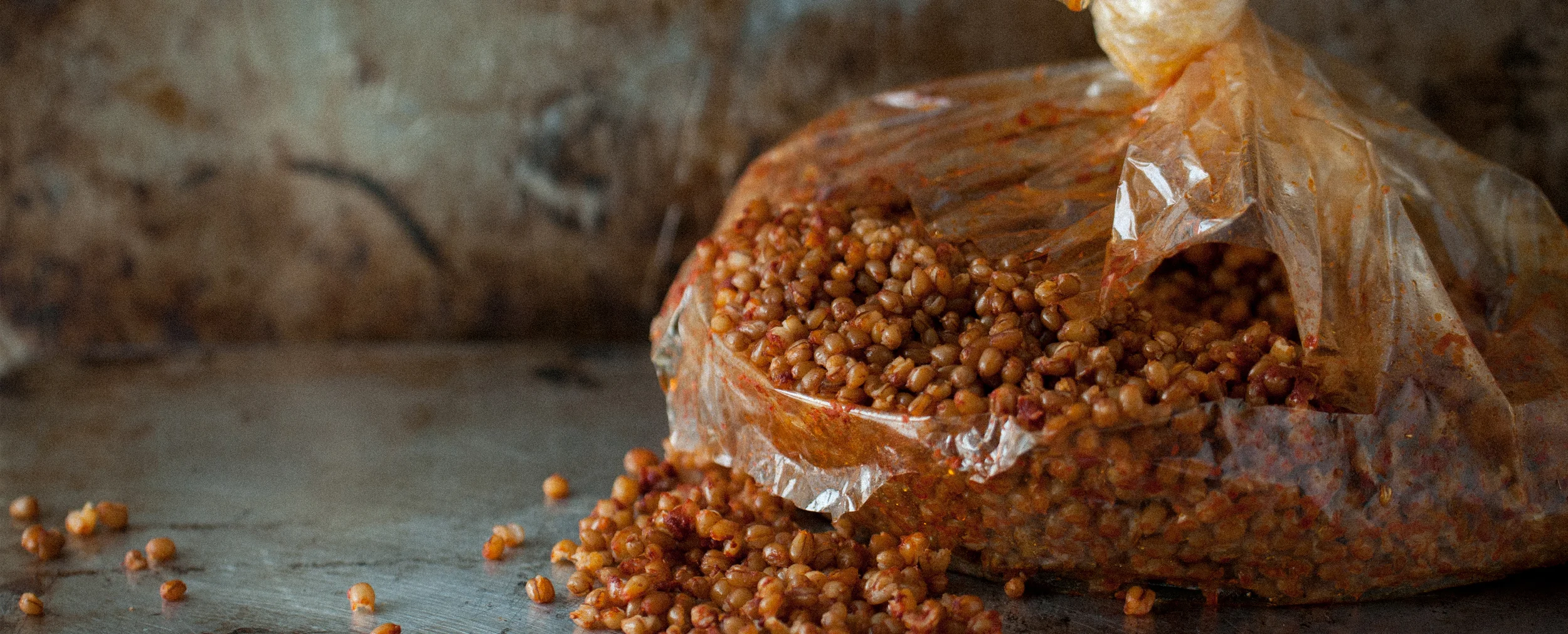 Inside an oven bag, place the wheatberry and pour the water inside the bag. Tie the bag.